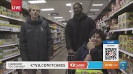 7 Cares: Hector and the NNU basketball team go shopping in Fred Meyer for canned goods Hector and members of the NNU basketball team go shopping at Fred Meyer for canned goods to gift to families during 7 Cares. Author: ktvb.com.